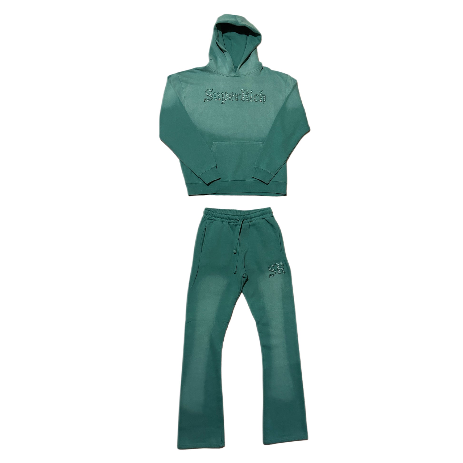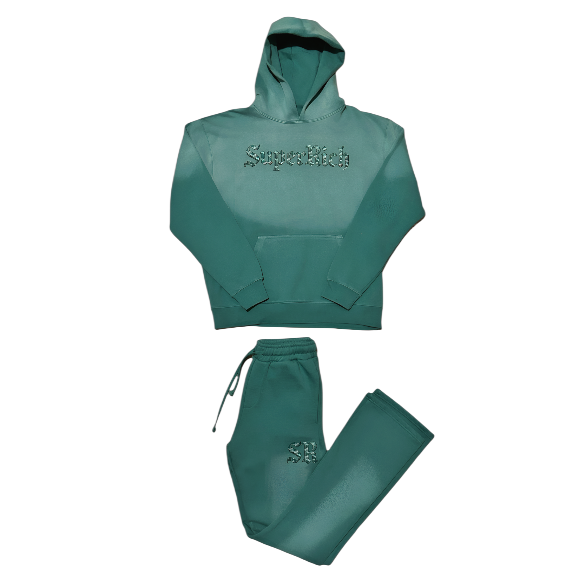 Green SuperRich Pullover Hoodie & stack Pants Set