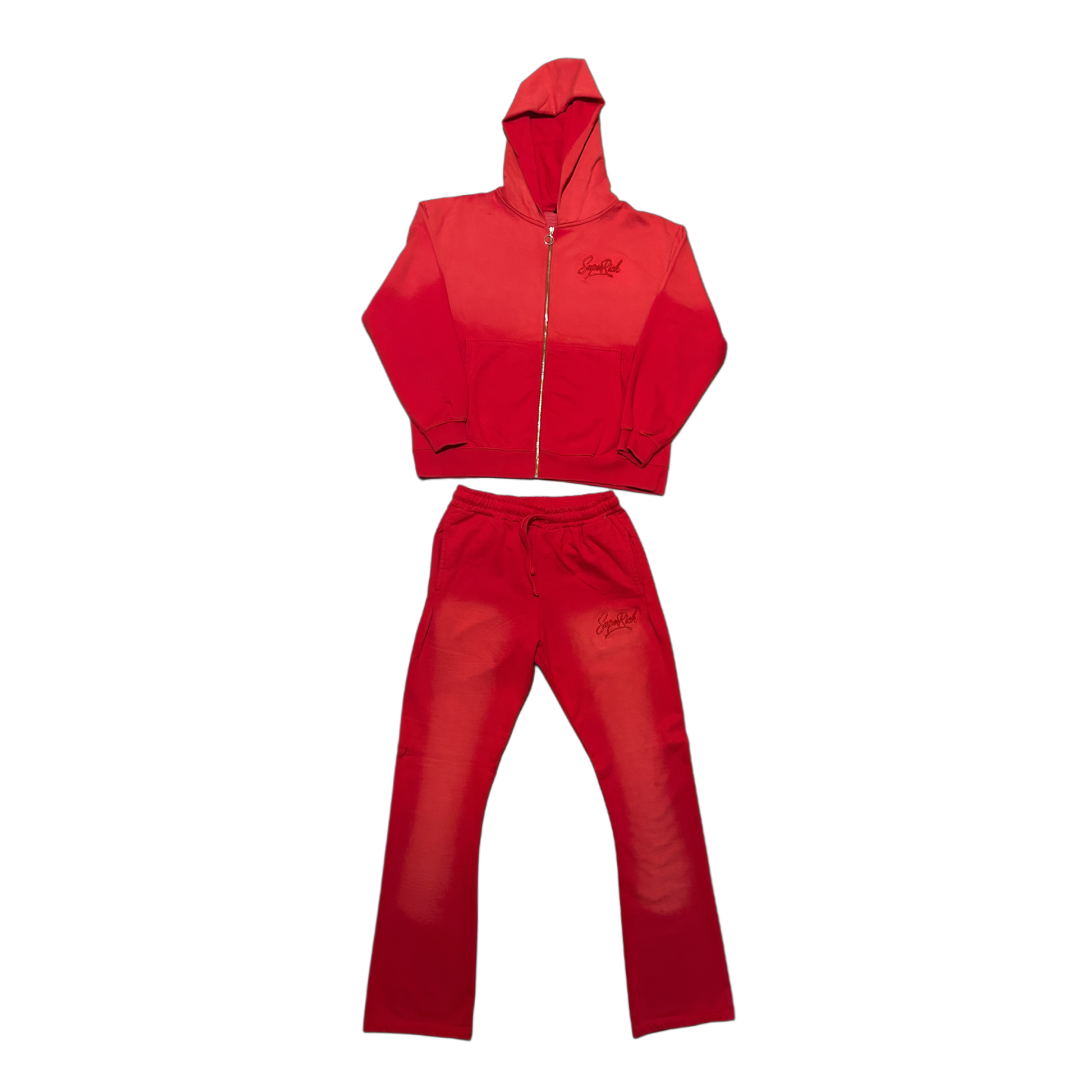 Red Sunfade Stacked pacts tracksuit