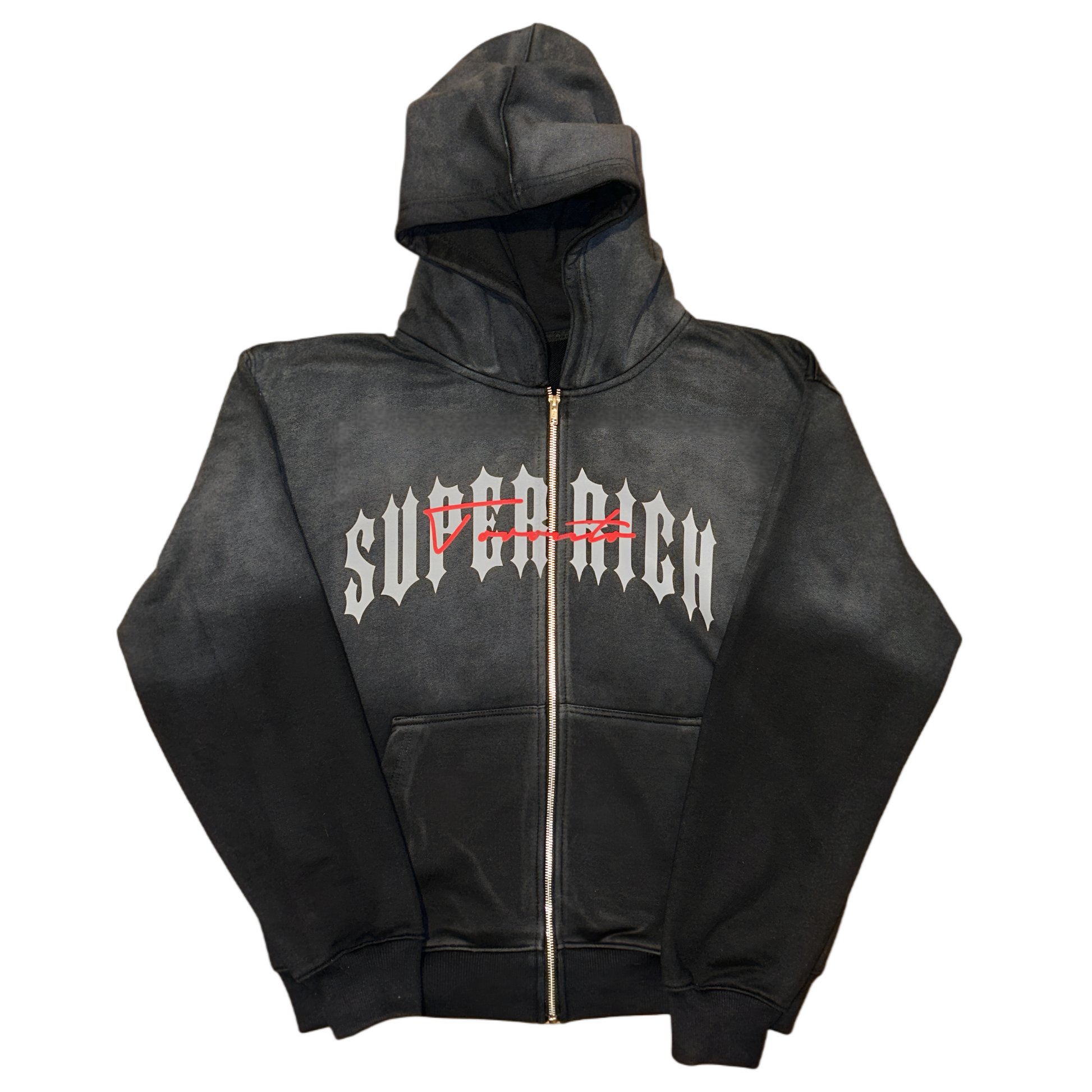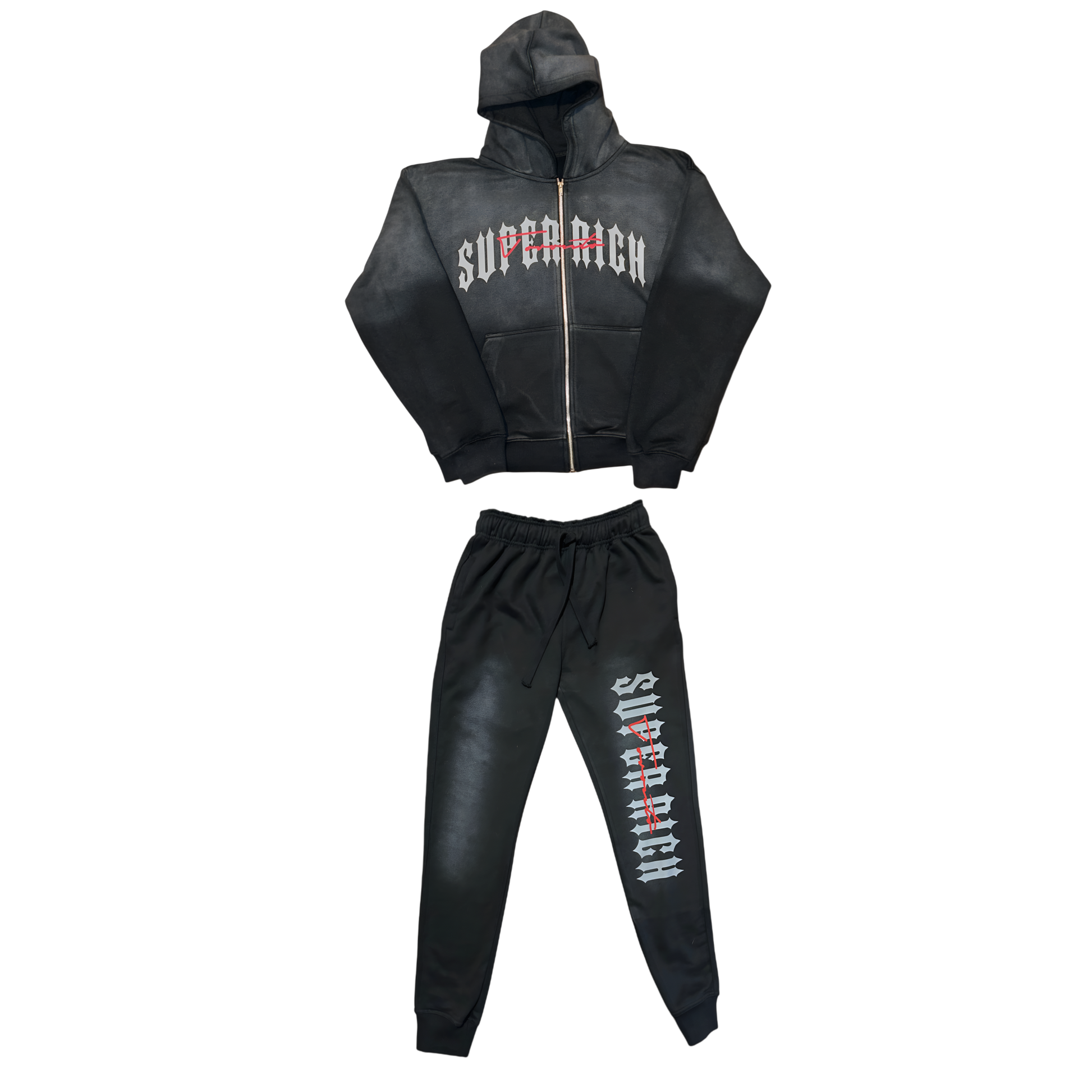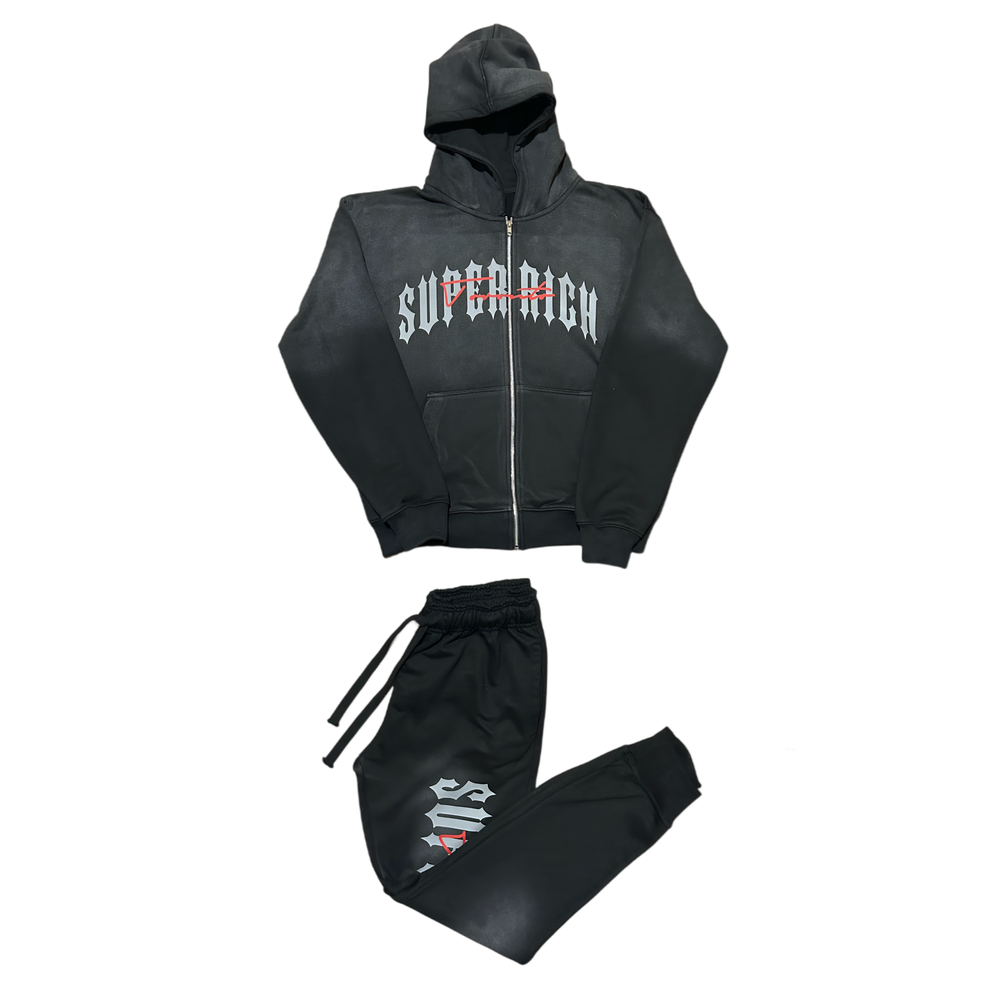 SuperRich Toronto Black Sunfade Zip Up Hoodie & Regular Trackpants set